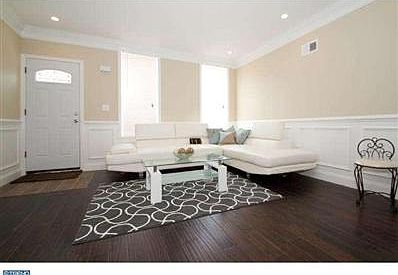 Completely renovated 3 bedroom 2.5 bath extra deep home featuring a finished basement beautiful wood floors contemporary bath detailed moldings 10 year tax abatement pending and more all done by a quality developer with quality materials. Wide open living/dining room with two new front windows beautiful wood floors and detailed crown and chair rail molding plus wainscoting. All-new contemporary open kitchen boats beautiful white cabinetry with inside lighting glass tile backsplash stainless steel appliances island counter bar counter overlooking dining area with pendant lighting and door out to yard. Straight hardwood steps lead to the second floor where you'll find two bedrooms with windows and closets and a full tile bath off the hall with contemporary dual sink and vanity. There is also a front bedroom suite boasting very high ceilings two windows two double closets with shelving and private contemporary all tile bath! Finished basement doubles as a den family room or office with a tile floor powder room mechanical closet laundry closet two windows and recessed lighting. This fantastic abode is nestled on a great Whitman block with wide sidewalks and is convenient to shopping transportation parks the waterfront bridges Center City and more!