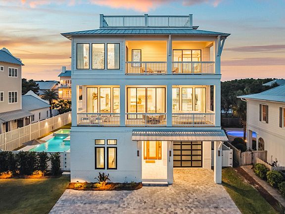 Welcome to 329 Winston Lane, a home where design pedigree and coastal lifestyle converge in extraordinary fashion. Rising three stories above Inlet Beach and crowned with an expansive 4th-floor rooftop deck, this residence offers sweeping Gulf views, hand-selected finishes and furnishings curated by Melanie Turner Interiors of Atlanta, and a track record of performance with rental revenue nearing $500,000 this year. It is a property that marries beauty, lifestyle, and investment like no other.The ground floor sets the tone for entertainment. A game room with wet bar and pool table opens through expansive sliding doors that erase the boundary between indoors and out, creating one seamless living space. Here, a covered outdoor kitchen with natural gas grill, alfresco dining, and fireplace lounge sets the stage for unforgettable gatherings. Beyond, the private pool and spa glisten in the sun, while the rare luxury of both a pickleball/tennis court and a basketball court bring energy and play to every gathering. Two private guest suites provide comfort and privacy at day's end.