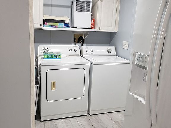 FANTASTIC BUY! $90,000 THIS 2002 HOMES OF MERIT DOUBLEWIDE 55 and over community. Coveted corner lot, patio faces north. Move in ready, WELCOME! LOCATED IN THE PET SECTION OF THE PARK, WAITING FOR YOU TO CALL HOME!27' x 56' Doublewide Home with all the Appliances, Window Treatments, and Special Touches Throughout! KITCHEN12’6” x 13’ A Large Open Kitchen with large island. White Cabinetry and Laminate Countertops. All new luxury vinal Floorings, New Double stainless-steel Sink with High End Faucet/Sprayer Combo. Samsung Side-by-Side Refrigerator w/ Ice and Water in the Door, Dishwasher, Spectra Smooth Cook Top Oven, Range Hood, Built-in GE Microwave. LIVING ROOM18’3” x 17’10” Entertainers Cream Living Room with an Entire Wall of Built-In Cabinetry. Lighted Ceiling Fan, and Glass Front Cabinets. TV Nook Measures 4’5” Wide and is 2’2” Deep. DINING ROOM9’ x 12’6” Formal Dining Room with Beautiful Chandelier fan. MASTER BEDROOM12’7” x 15’ King-Sized Master Retreat, Large Walk-In Closet, Double French Doors Leading to Bath. MASTER BATHROOM 12’8” x 10’5” Lavish Master Bath Fit for a King and Queen! Crown Jewel of this is a custom bench with extra storage Flanked by Dual Vanities. Glass-Front Cabinets to Display your Products. Linen Cabinet Allows for Extra Storage. Large Walk-in Shower with Sliding Glass Doors, and Frosted Window. GUEST BEDROOM #112’6” x 10’2” Ceiling Fan with Light, and a Large Walk-in Closet! GUEST BEDROOM #2 12’6” x 8’8” Ceiling Fan with Light, and a Large Walk-in Closet! HALL BATH 7’9” x 5’ Hall Bath Features a Tub/Shower Combination, Vanity with Storage, and Linen Cabinet in Hallway. LAUNDRY ROOM 6’5” x 6’2” Whirlpool Washer and Roper Dryer, Cabinetry, Door to the Side Yard. EXTERIOR Long Concrete Driveway will easily Accommodate 3 Cars or 2 and a Golf Cart. 11’ x 11’6” Shed with Work Bench and 2nd Refrigerator. Low Maintenance Vinyl Siding, Shingled Roof, Storm Shutters, Irrigation System with Timer, and Great Views of the Vacant Pasture to the Left and Orange Orchards out Back. ABOUT THE PARK: Towerwood by Bedrock