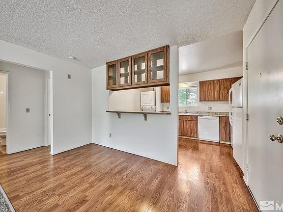 Panorama Village end unit condominium, located upstairs with privacy, tree and city views. Two spacious bedrooms and one bathroom. Updated laminate flooring, white appliances, laminate countertops and a stackable clothes washer and dryer in the unit. Super clean and ready for you to move right in. 2022-10-03