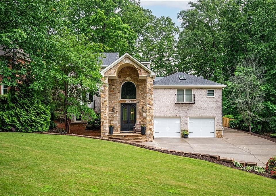 Welcome to this stunning all-brick home showcasing beautiful curb appeal, and also ensuring durability and lower maintenance. As you enter through the grand two-story entry, you’ll be greeted by the impressive Juliet balcony that overlooks the foyer, adding a touch of sophistication to the home’s design. The main level boasts beautiful hardwood floors throughout, highlighting the open flow between the living spaces. The large eat-in kitchen features gorgeous granite countertops, stylish cabinets, a breakfast bar, pantry, double ovens, cooktop, Bosch dishwasher, French door refrigerator and tile flooring. The separate dining room opens to the living room providing the perfect space for gatherings. Enjoy an abundance of natural light in the expansive sunroom, which overlooks a flagstone terrace complete with a fireplace and outdoor grill. The backyard oasis is fenced with beautifully landscaped grounds all around. The large lot is adjacent to a cul-de-sac. This home has FOUR fireplaces: in the primary bedroom, on the terrace level, a double-sided one between the living room & sunroom, plus one outside! The massive primary suite offers lots of natural light with a sitting area, stone fireplace and built-ins. The en-suite tiled bathroom features two separate vanities, a jetted spa tub, a walk-in tiled shower and a large custom closet with endless space. Upstairs you will find two spacious bedrooms with a shared full bathroom with double vanity, plus a loft space perfect for a craft or game area. The finished terrace level expands your living space with a family room with brick fireplace, and a wet bar area complete with mini refrigerator. An additional bedroom, full bath, laundry room, storage and large flex room complete the terrace level. This could serve as a great in-law or teen suite, or as an additional area for entertaining. UPDATES: NEW roof, NEW 75 gallon water heater, foam attic insulation, newer 4-ton HVAC for downstairs, new carpet upstairs, 2 electrical panels and double pane windows throughout. This home is a true gem, combining unique features with practical living spaces. It’s the perfect place to create lasting memories. Carriage Lakes is served by top-rated East Cobb schools, including Tritt Elementary School, Hightower Trail Middle School, and Pope High School. Amenities include a swimming pool, tennis courts, clubhouse facilities, playground and a small lake. This home is located in Cobb County with Cobb County taxes and just minutes to Downtown Roswell's shopping, restaurants and more.