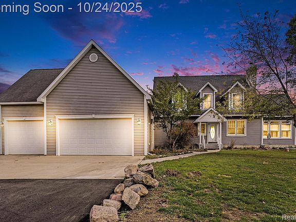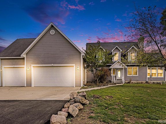 Welcome to 3290 Fisher Road in Howell! Set on over 10 picturesque acres, this 4-bedroom, 3-bath Colonial home offers peace, privacy, and beautiful countryside views in every direction. The property sits at the end of a brand-new asphalt driveway and features open green space surrounded by mature trees and natural landscape—ideal for nature lovers, hobby farmers, or anyone craving room to roam. Inside, you’ll find approximately 2,600 sq ft of comfortable living space. The main floor features an inviting living room with a stone fireplace, a bright kitchen with plenty of storage and counter space, and a dining area framed by large windows overlooking the property. A cozy sunroom adds the perfect spot for morning coffee or quiet afternoons. Upstairs, spacious bedrooms include a large primary suite with a walk-in closet and private bath. Enjoy relaxing on the wraparound porch, unwinding by the fire, or exploring your own private acreage. Additional highlights include a full basement offering great storage potential and an attached 3-car garage. Conveniently located just minutes from downtown Howell, I-96, and local schools, this home combines country living with everyday convenience.