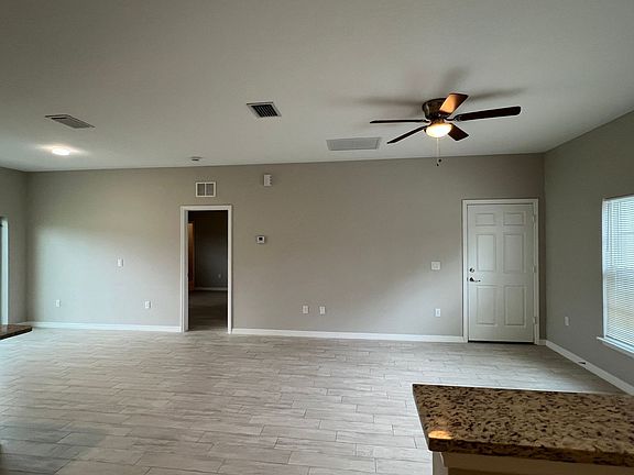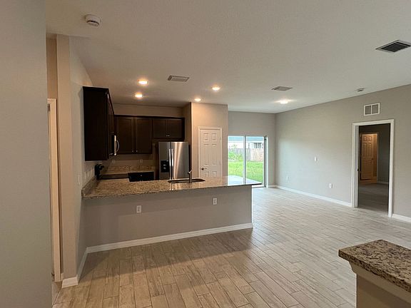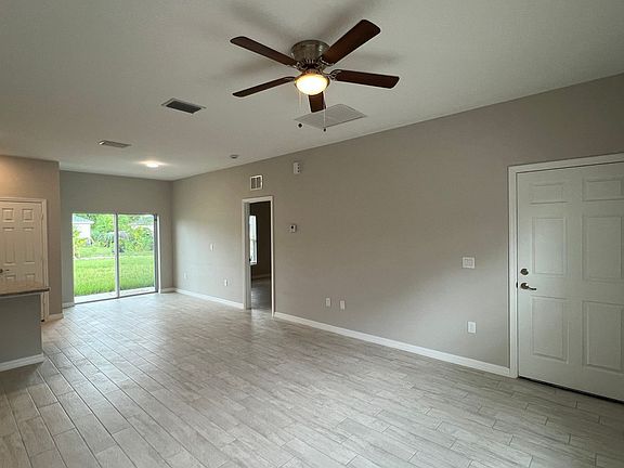 Welcome to this gorgeous 3BR/2BA open floor plan home in Palm Bay! With upgraded flooring throughout, you'll love the convenience of having no carpets to maintain. The modern kitchen features stainless steel appliances and durable granite countertops, perfect for both cooking and entertaining. Ceiling fans are installed in each bedroom and the main living area for added comfort. The bathrooms also showcase granite counters, with a dual vanity in the master suite.