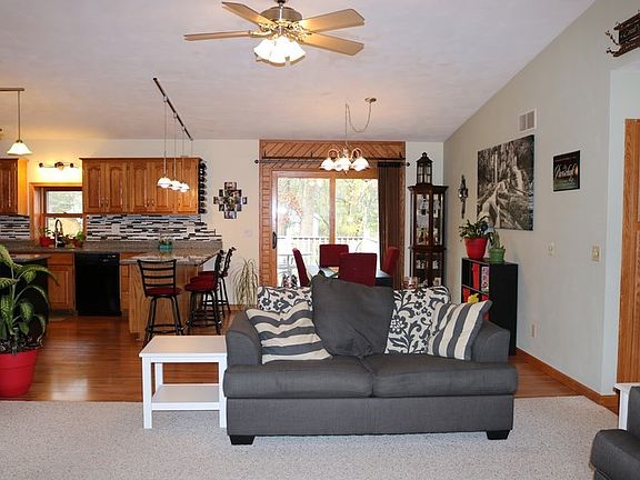 Stylish 3 bedroom 3 bath Sunshine ranch boasts a bright airy and open main floor plan with vaulted ceiling. Beautiful kitchen with raised panel cabinetry, crown molding. Quality Quartz Counter-tops set off by a stunning contemporary tile back-splash and complimented with beautiful pendant lighting. Ample dinette seating provides for great entertaining and Holiday get-togethers. A spacious low maintenance deck is accessed from the dinette and overlooks a fenced back yard.The living-room offers welcoming sunshine and a comfortable gathering area for family and friends. A well appointed master bedroom retreat offers the amenities you've come to expect in this price range. A nicely finished lower level features a bar which is Open for Business! A free standing gas fireplace, large family/rec room, full bath, king size bedroom and plentiful storage areas round out this quality home package. At just under a half acre, the yard is serviced by underground irrigation, offers a fenced garden area, jungle gym and storage barn. Southern exposure helps keep the driveway clean in winter while providing natural light to many areas inside the home. Great location, great value. Call today.