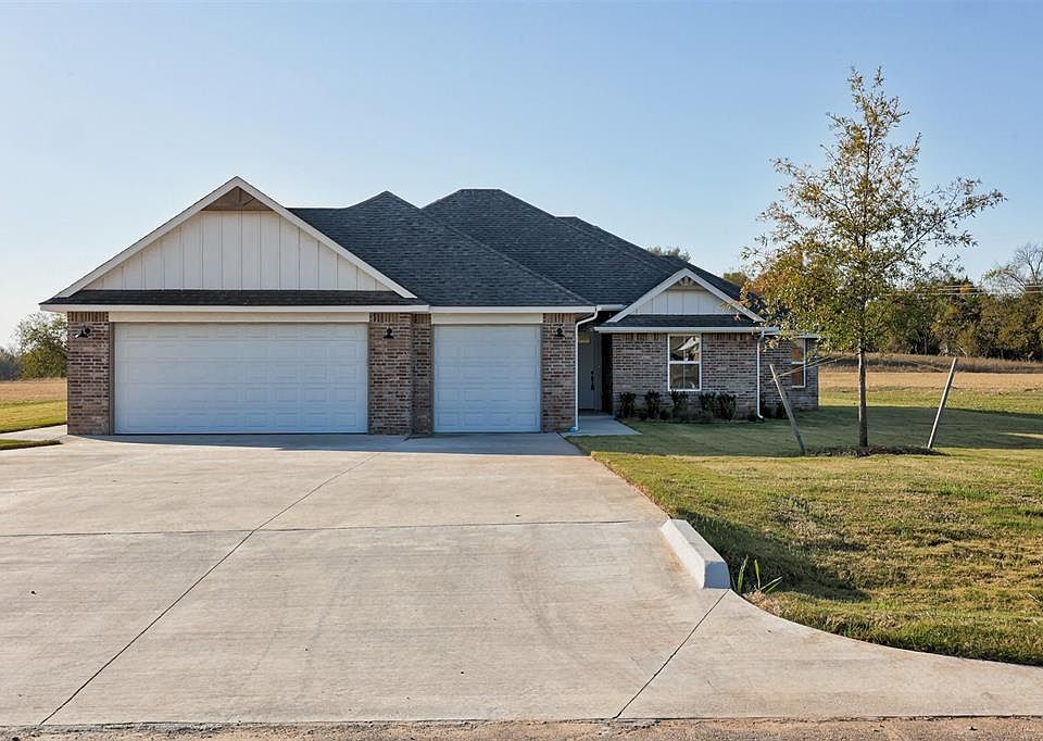Welcome to your dream home in the Hidden Creek subdivision in Noble. Offering 4 spacious bedrooms, 3 full bathrooms, and 2005 sq. ft. of thoughtfully designed living space, this home perfectly blends style and comfort for everyone to enjoy. Open kitchen, living, dining room area. The kitchen features sleek quartz countertops, a designer white tile backsplash, stainless steel appliances, designated coffee bar plus a large walk-in pantry. Your private primary suite offers the perfect escape, complete with dual vanities, a beautifully tiled walk-in shower with a built-in bench, and storage closet. The walk-in closet connects to the laundry room for added convenience. Step outside to a covered back patio overlooking your expansive 1.21 acre lot. Don’t miss your chance to make this stunning Noble property your forever home!