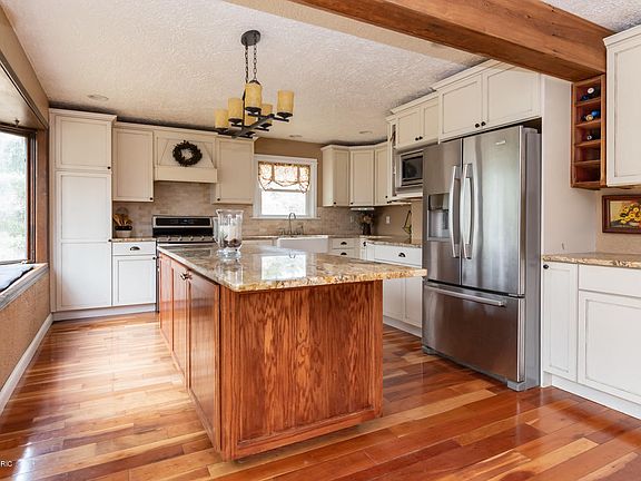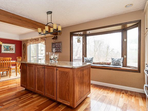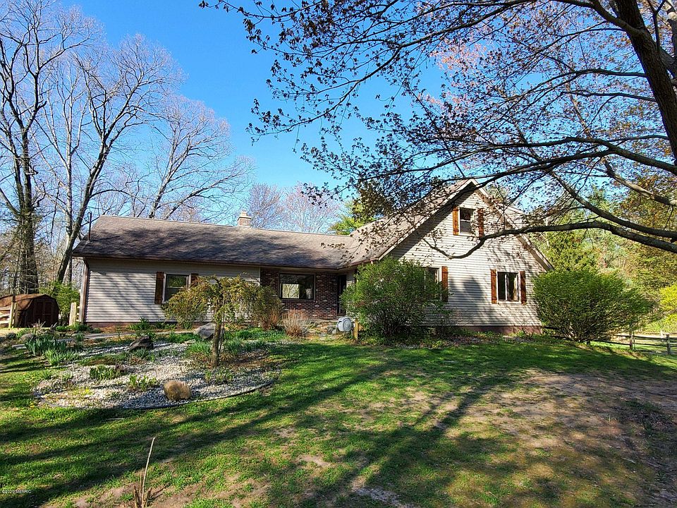 Rare find close to town w/ Country feel. The home sits on about 2 acres w/ a relaxing running brook flowing into a private pond that ends in Wolf Lake. Owners have added many upgrades. Kitchen was completely remodeled in 2016. New Cabinets, Granite countertops, center island added, farmhouse sink, appliances, custom barn wood beams. En suite bath added to the MF master bedroom. Glass shower, slate tile, custom barn wood cabinets. Basement Bath updated in 2018. Expansive deck overlooks the pond & the sounds of Nature all around. Top features: 3300 sqft living space, walk out, Huge 20x40 Pole Barn, wood burning fireplace, Furance/AC appox 12 yrs, MF Laundry, Windows & Sliders replaced, Sub-panel added, Insulated garage door, water softener 2019, Cherry Hardwood floors. Amazing Home!