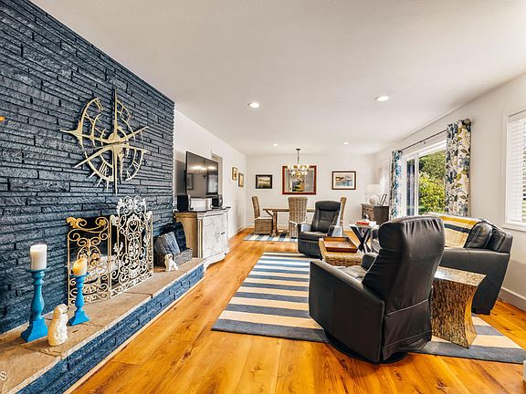 This home is the ideal blend of coastal elegance and contemporary design to create a stylishly timeless 3 bed, 2 bath, mid century built residence. Surrounded by its sprawling lawn, whispering Alders, and towering redwoods throughout its 1 acre parcel, this 1620 sq. ft. home has been completely renovated over the past three years from the inside out. The open floor plan and blonde oak finished floors are bathed in warm light as the large living room and dining area comfortably transition to the kitchen and breakfast nook. The sophisticated newly designed kitchen is crisply complimented with quartz countertops, stainless steel appliances, and bright new cabinetry with discretely bold custom glass fixtures. Sleek window treatments, striking brick fireplace, and elevated lighting features, create a sense of updated seaside refinement. Technological upgrades have also been integrated throughout this home's utilities and systems to take modern living to the next level. Programmable WiFi water heater, Apple home enabled cameras, upgraded whole house WiFi, 230 volt and 60 amp electrical wiring for an electric vehicle charger, and video doorbell are included. Coupled with an 18kw 2023 whole house generator, 2024 UV water treatment system, newly installed 50 year roof, and new solar ready electrical panel, make this property totally rejuvenated for its next homeowner. Ideally located on the cusp of Fort Bragg, Caspar, and minutes from Mendocino, there is a plethora of exploration at your fingertips. Neighboring Jug Handle State Natural Reserve beckons you to explore its 2.5 mile ecological staircase of hiking trails, dog walks, or simply stepping out your doorstep for spectacular ocean sunsets. Here you will find the opportunity for pure home enjoyment and access to a true coastal lifestyle experience.