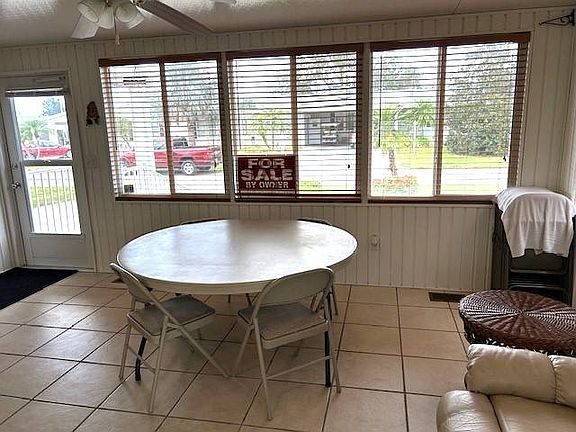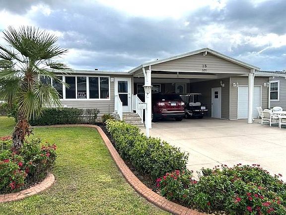 This beautifully renovated 2009 Homes of Merit offers 3 bedrooms, 2 baths, and 1,550 sq. ft. of thoughtfully upgraded living space. Recent improvements include a new roof (2022), updated siding (2023). The modern kitchen boasts new countertops (2022), upgraded cabinets, and flows seamlessly into the finished, air-conditioned lanai. Both the lanai and the golf cart shed feature insulated roofing for a quieter and cooler experience. Bathrooms and lanai are updated with elegant tile flooring, ensures a truly move-in-ready home. This gem comes fully furnished, complete with a golf cart, riding lawn mower, and a large shed for extra storage. Don't miss this opportunity to enjoy comfort, convenience, and style in your next home!