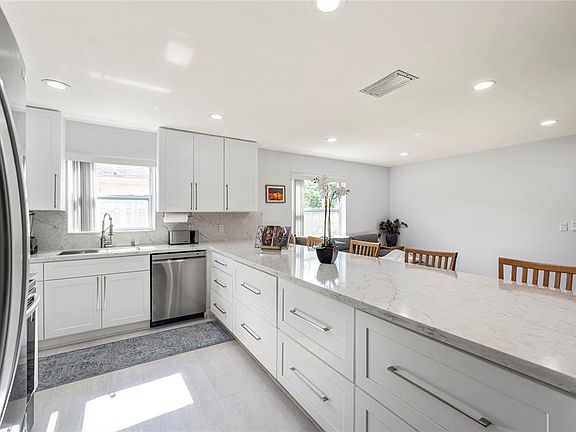 Enjoy a relaxing, fully fenced backyard with a nice pool and a green area perfect for pets. This 3-bedroom, 2-bath home features a split, open floor plan and a gourmet kitchen with bright quartz countertops, soft-close custom cabinetry for extra storage. The spare bathroom has been beautifully remodeled in a sleek, contemporary style. Additional features include impact-rated hurricane windows, automatic sprinkler system, a spacious master suite with pool views, a separate laundry area with a new washer. Recent upgrades included newly installed gutters & custom Closets. Central area location, just under 4 miles to the beach and minutes from Quiet Waters Park, I-95, and the Turnpike. this home offers convenience.