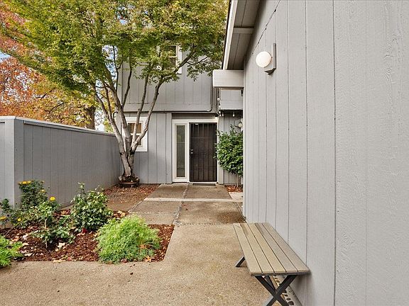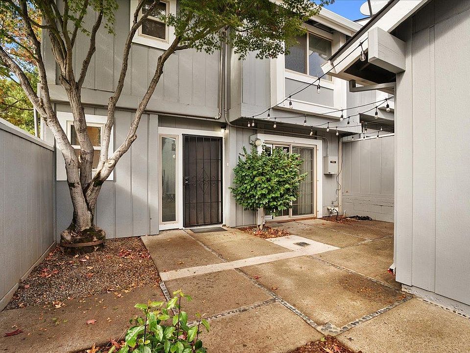 Discover the perfect blend of privacy and convenience in this end-unit condo, ideally positioned next to open space. With 2 bedrooms, 1.5 bathrooms, and detached 1-car garage, this home offers a warm welcome from the moment you walk into the courtyard. The inviting family room features a cozy pellet stove and opens to the dining room, both looking out double sliding doors to the back patio. The kitchen shines with granite countertops, stainless steel appliances including refrigerator with ice maker, bar seating, and modern green cabinetry, an ideal space for cooking and entertaining. Another sliding door at the end of the kitchen brings light and openness to the inside laundry area with a washer and dryer that stay! Upstairs are two generously sized bedrooms, each with walk-in closets. Don't miss the custom closet system in one of the closets for maximum organization. A beautifully updated bathroom with granite counters and lots of cabinet storage. Outside are two spacious and fenced patio areas, one in the private backyard and one in the front courtyard, both shaded by mature trees for year-round enjoyment. A Generac generator gives peace of mind in the event of power outages. Located just steps from Cameron Park Country Club and minutes from Hwy 50 and Cameron Park Lake.