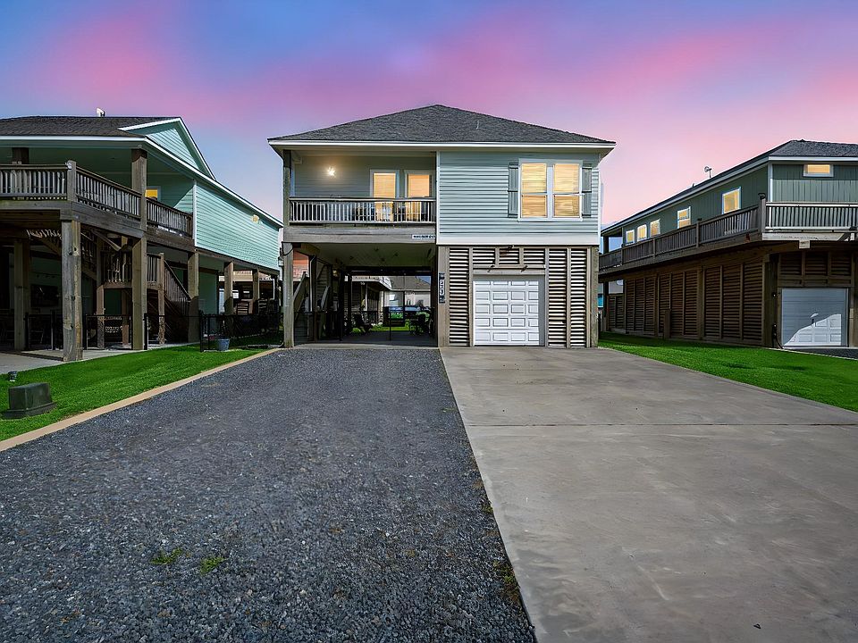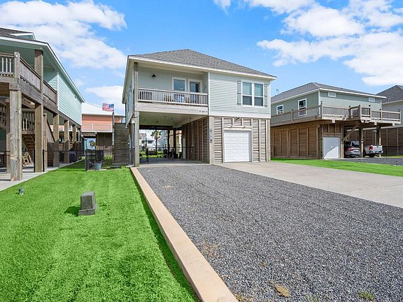 Coastal living at its best in this beautiful Crystal Beach home, perfectly located on a quiet cul-de-sac just minutes from the new Margaritaville! This charming beach retreat offers private community beach access, paid-off solar panels for energy efficiency, and both front and back porches to enjoy the sea breeze. The oversized garage provides plenty of space for vehicles, golf carts, or beach gear, and the outdoor showers make it easy to rinse off after a day on the sand. Whether you're looking for a vacation getaway or a full-time escape, this home checks all the boxes!