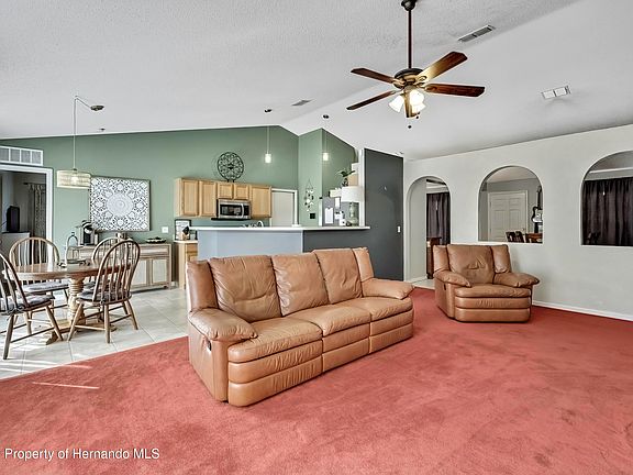Home Sweet Home! This lovely home features 1,657 sq ft of living space with 3 bedrooms, 2 bathrooms, a 2 car garage, and a prime location in the heart of Spring Hill. As you step inside, you will appreciate the seamless flow from the family room and dining room to the spacious living room and kitchen. The kitchen is complete with stainless steel appliances and a cozy breakfast nook with sliders, showcasing the large backyard. With recent updates including a 1 year old roof, a 5 year old A/C Unit, and a new leach field, this property is well maintained. It's proximity to amenities and effortless commute to Tampa or Orlando add to its appeal, making it an ideal choice. Make this house your home today!