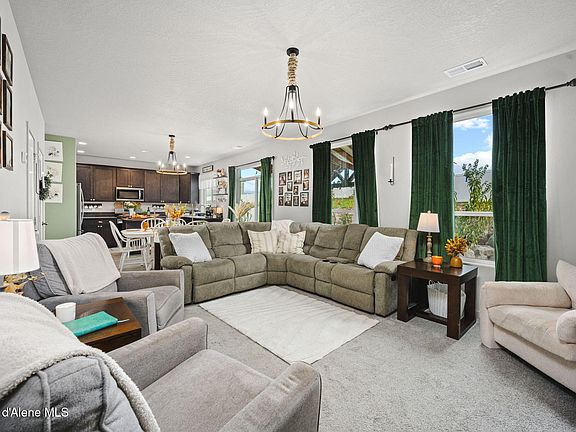 3.25% ASSUMABLE VA LOAN! Nestled on a quiet cul-de-sac in Post Falls, this move-in ready home offers 3 bedrooms, 2.5 baths, a loft upstairs and plenty of space for everyone to spread out. The open-concept kitchen and living area make family dinners and homework time flow seamlessly. The custom covered back patio and fully fenced backyard is perfect for entertaining with summer BBQs, playsets, or even a trampoline. The current owners added 30 TREES to the property to upscale landscaping. Enjoy your own garden area, berry bushes and fruit trees from your own home! Upstairs, you'll find a spacious primary suite plus additional bedrooms ideal for kids, guests, or a home office. With parks, schools, and shopping nearby, this home offers both comfort and convenience. Anchor coffee + Prairie Falls Golf just 0.5 mile away! Whether it's bike rides in the cul-de-sac, roasting marshmallows in the backyard, or hosting game nights, this is the place where memories are made