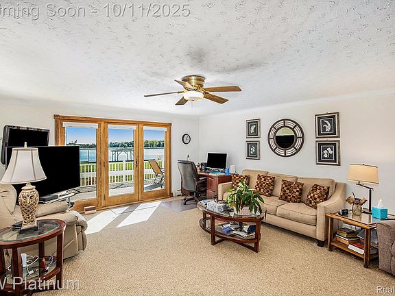 Outdoors, the property truly shines — complete with an extra-deep steel seawall, dock with a 10,000-lb boat hoist and electricity, and a 4-car detached garage offering tons of storage for vehicles, boats, and toys. Whether you’re watching freighters drift by, casting a line for the day’s catch, or hosting friends on your deck at sunset, this home offers the ultimate island lifestyle. Includes a 1 year Americas Preferred home warranty.