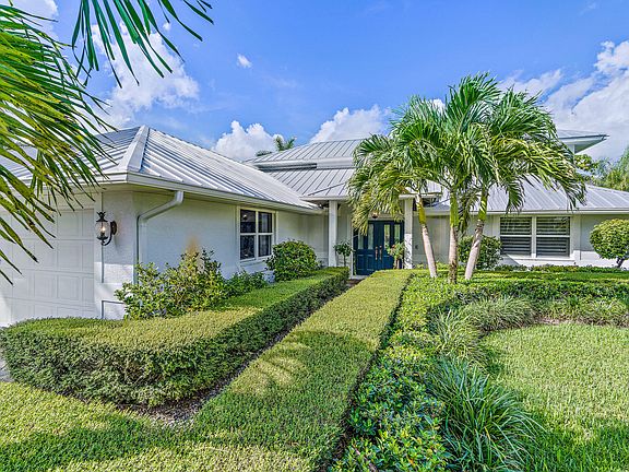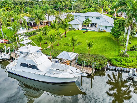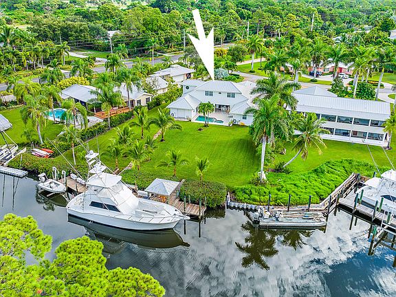Attention BOATERS! Florida charm & character in this renovated waterfront CBS home offering 4 bedrm + den/office, 3 baths & 2 car garage on a half-acre lot. 114 ft of waterfrontage w dockage for 50ft+ vessel, covered Gazebo & lift for smaller boat. Deep protected harbor, no fixed bridges & mins to Manatee Pocket & St. Lucie Inlet. Open floor plan includes French pattern marble floors, crown molding and Plantation shutters throughout. 3 zone AC. Renovated kitchen is complete with gas range, granite, island, farm sink & wine fridge. Large den/office with custom bookshelves & storage & double pocket doors. Downstair primary suite & newly updated bath & custom walk-in closet. 1st floor guest bedroom & updated cabana bath. Additional 2 guest bedrms & full bath on 2nd floor . Walk in attic storage on 2nd floor. Stacking slider doors lead to covered lanai overlooking heated pool/spa and lushly landscaped yard. Metal roof 2016, gutters & freshly painted exterior. Bonus attached small garage in back with commercial ice machine & electric door, perfect for storing fishing gear & yard equipment. Oversized laundry room with sink & plenty of storage cabinets. Enjoy the ultimate Florida living in this boater's paradise. Great location in East Stuart off St. Lucie Blvd.