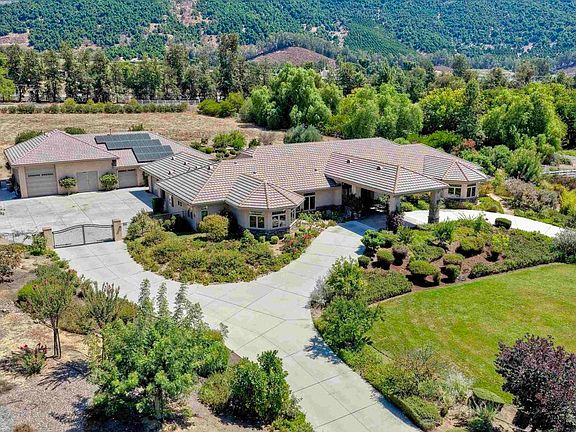 FABULOUS FIND IN PARADISE! Nestled in Pauma Valley Country Club Estates, a private, safe gated community, with 24/7 roaming security guards. This stunning retreat offers a private oasis of luxury and unparalleled amenities. Key features and benefits include: Brazilian cherry hardwood floors and Vaulted beamed ceiling. His and hers offices, media room, and 950 sq ft guest house. 3 car garage, Woodworking shop, RV garage, Circular driveway and 3.2 acres of private land. 4 bedrooms including a 1 bedroom guest house. Expansive front lawn, stone-pillared entry, and mountain views. Owned Solar. Two Koi ponds and 36 fruit trees including, Cherry, Peach, Apricot, Kumquat, Persimmon, Tangerine, Blood Orange, Orange, Pomegranate, Jujube Apple, Mexican Guava, Longan, Cherimoya, Pomelo, Plum, Nectarine, Champagne Grapes and Walnut. As you step through the front door, you'll be welcomed into a home of relaxed comfort and seamless indoor-outdoor living. The wall of large sliding doors not only floods the space with natural light, but transforms the outside into an extension of your living area, showcasing the picturesque mountain views and park-like backyard. This exceptional property is the ultimate retreat for discerning executives and families seeking the utmost in privacy, luxury, and customized amenities. With a large master bedroom and bath including walk-in shower and closet, dedicated offices, a state-of-the-art kitchen, Butler's pantry, Wet bar, media room, and private guest accommodations, this home caters to every lifestyle need - whether you're entertaining clients, pursuing creative hobbies, or simply enjoying quality time with loved ones. Surrounded by 3.2 acres of beautifully landscaped grounds, the back lot is ready for horse facilities. This estate offers a true sanctuary where you can unwind, recharge, and embrace the serenity of your own private oasis. Pauma Valley Country Club is a private club. New Homeowners are welcomed to apply for Membership. Various Memberships are available.
