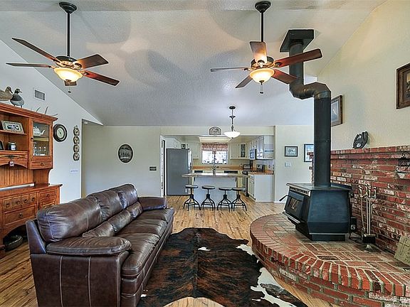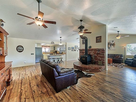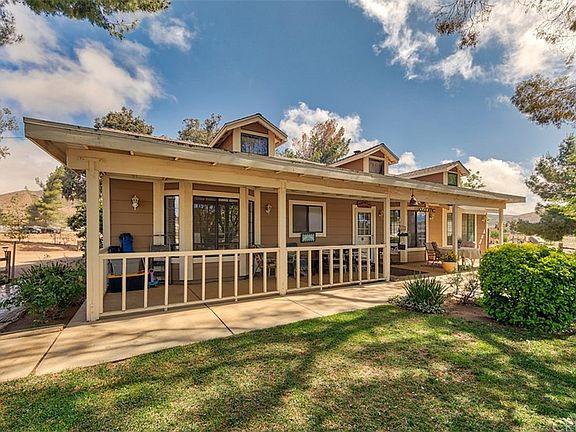 EQUESTRIANS - THIS is the Home for you! Single story, 4 bedroom ranch home, on 2.5 Usable Acres in a prime location. This home offers easy living with its spacious, open floor plan, vaulted ceilings, wood floors and cozy wood burning stove. From the front porch, take in the serene mountain views, sheltering pines and trickling KOI pond. Functional outbuildings on the property include a guest house, tack room, shed and hay storage. Plenty of amenities for your critters too! The property is fully fenced, has a large Riding Arena, Round Pen, Corrals, Hay Storage, Goat and Chicken Pens. Saddle up and ride directly out to trails. Close to all amenities, county water, natural gas and easy freeway access. Don't delay - this special property will be snatched up quickly!