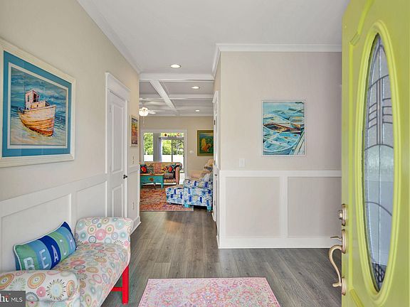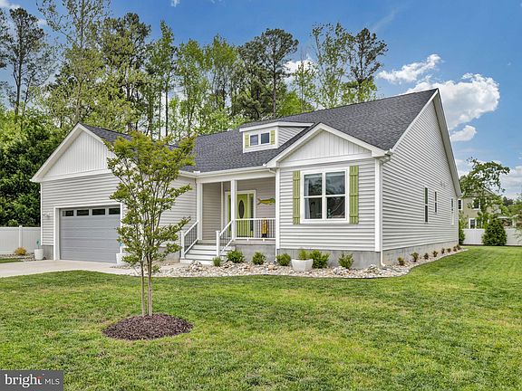 Discover this beautiful, like-new home just 3 miles to the beach! Built in 2019 and expanded in 2021, this ranch style home features two separate suites, one on each side of the house, making it a perfect place for guests or multi-generational families to gather. In the entryway you will find luxury vinyl plank flooring, crown and chair rail molding, a half bath for guests, and a hallway leading to two guest bedrooms and a full bathroom. The living room flows just past the entry and opens to the kitchen and dining area, providing a great space for entertaining. The coffered ceilings in the living room, white kitchen cabinets and granite countertops offer a luxurious feel to the home. Situated off of the living room is the large primary suite with built-in bookshelves and a huge walk-in closet. The primary bath is complete with two sinks, a tiled, walk-in shower, and a separate water closet. The additional suite was added in 2021 and is located past the laundry room, providing total privacy. Just past the living room you will find the recently enclosed porch, complete with a mini-split HVAC system so it can be enjoyed year round. Walk out to the fenced back yard and relax on the newly added 620sqft paver patio, or enjoy crabs on the deck that is wired with electric so you can have lighting or music easily accessible. The HVAC was replaced 2 years ago, kitchen appliances 6 months ago and an in-ground sprinkler system last summer. With 2 sheds plus a 2-car garage, there is plenty of storage for all of your beach toys. Located in a quiet community with no HOA, this home is ideally placed within minutes of amazing restaurants, shops, grocery stores, banks, doctor's offices and more!