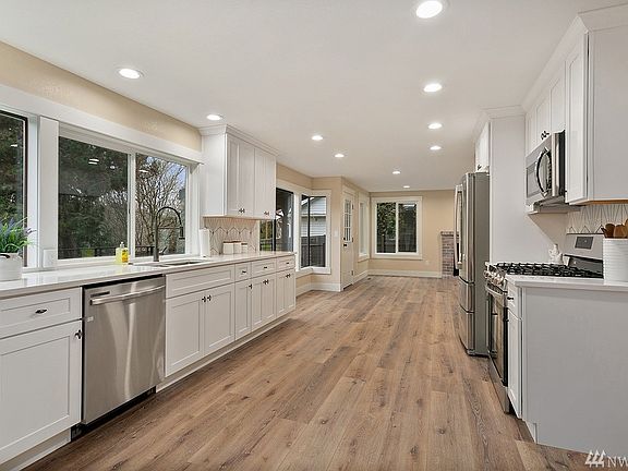 Beautifully remodeled Corner lot home in Campus Woods. New kitchen cabinets and vanities with new appliances. Open floorplan boasts new waterproof LVP flooring on main and carpet upstairs. New windows and millwork. New insulation crawl space, attic and walls. New drywall and paint inside and outside. Updated plumbing, electrical and vents with permits. 2 Fireplaces with brick accents, Updated large deck with iron railing in back overlooking a private mature landscaped lot. Attached 2 car garage comes with a utility sink and shop area.