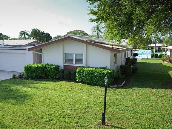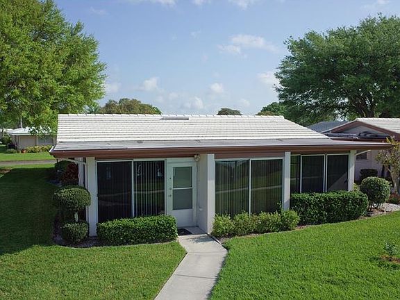 Dazzling Villa available in Village Green, a great 55 plus community centrally located to beaches, dining, entertainment, and shopping! Do not miss your chance to own this open 2-bedroom/2-bath villa, with an office, and oversized 2-car garage and huge driveway! Nothing has been missed in this home: solid wood cabinets, wood floors, 18" diagonal tile, and built ins. Additionally, there is a large Florida room with air conditioning for all your entertaining needs. This is the perfect maintenance free home to experience the Florida lifestyle, with beautiful views of the pool and mature landscaping you will feel relaxed the second you step foot in the door!
