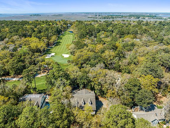 Classic, quintessential, and elegant Lowcountry style home on Seabrook Island. This stunning home is perfectly positioned to overlook the 14th green and the 15th tee box of renowned Crooked Oaks Golf Course. This home was designed with the view in mind with walls of windows overlooking these epic fairways. The full southern front porch and brick stairways are the most inviting. This home has gorgeous cherry hardwood flooring, crown moulding, recessed lighting, and plantation shutters. There is a formal dining room with tray ceilings and chandelier with a door to access the kitchen. This home has incredible living space with not only a large family room with gas fireplace with granite surround, and built-in bookshelves, but also a great sunroom with two walls of windows to take in the viewThe sunroom is open to the kitchen and breakfast room which makes this the ultimate hangout spot. The kitchen has granite countertops, under cabinet lighting, a designated coffee bar, gas range, two pantries, and a breakfast area with gorgeous light-filled bay windows. The primary suite is on the first floor and is super spacious, has tray ceilings, screened porch access, and a large bathroom with dual lavatory vanity, garden tub, ceramic tiled shower, private water closet, and a walk-in closet with custom closet system. The laundry room/utility room is on the first floor as well and does include extra storage and has a utility sink. There is a 2 stop elevator that has gorgeous wood paneling. There is a powder room on the first floor for guests. Upstairs there are 4 guest rooms. One of the guest bedrooms has just been updated with custom closet solutions and would also make an ideal upstairs den or media room. This is an elevated home with fully enclosed and de-humidified garage for 5 cars and plenty of storage space for beach toys and a workshop. This classic home is being sold furnished with a list of exclusions that will be provided by the Sellers. One of the LSVs will convey with sale of the home.