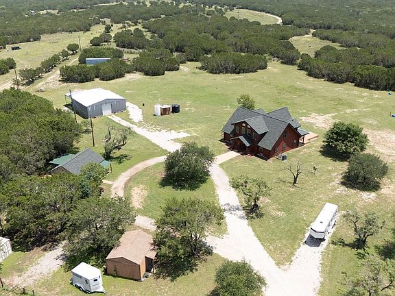 Gorgeous detail on this log home that overlooks 18 acres of pasture land and hill country views. *Unrestricted and Ag Exempt* The main home is approx. 3185/sq ft, 3 bedrooms, 2 and a half baths, 2 living areas, and dining off the kitchen. Soaring ceilings and log detail along the outer walls, with drywall finished interior walls for ease of decorating. This property also offers a sparkling swimming pool, a guest house that is approx. 540/sq ft. with 1 bedroom, 1 full bath, kitchenette, and storage off the back, a 40x40 workshop/barn with a 20x40 overhang for parking recreational vehicles and farm equipment. There are 2 fenced horse pens, and the property is fully fenced in 6 strand and 4 strand barbed wire. NextLink network for wifi is great! 12-14 miles to the nearest grocery stores and shopping. Burnet ISD schools and low tax rate. SEE VIDEO TOUR