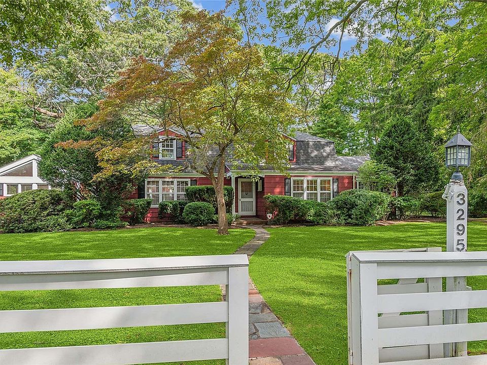 SOUTHOLD WATERFRON - Step back in time and connect with nature at the historic Allen Tobey Carriage House. Constructed in 1910, this charming residence was relocated to the verdant expanse of Jockey Estates in the 1950s, becoming a part of the "Red Road" community. Today, the house is nestled within private, mature grounds, featuring 300-year-old trees. The expansive lawn rolls down to a creek, offering kayak and canoe access. The residence boasts a formal living room with a fireplace, a library, a spacious sunroom, a kitchen, a light-filled dining room, a first-floor master suite, a powder room, and a large recreation room with an endless pool, hot tub and shower. Pool room can be converted into playroom, additional bedroom(s), or artist's studio. Bad weather? Generator included in sale. Additionally, the property includes a sizeable two-car garage with an attached screened porch and a shed. A boat launch is conveniently located at the end of the street, and there's a community beach in close proximity. Come, let yourself relax and simply drink in the natural beauty all around., Additional information: Appearance:Very Good,Separate Hotwater Heater:yes
