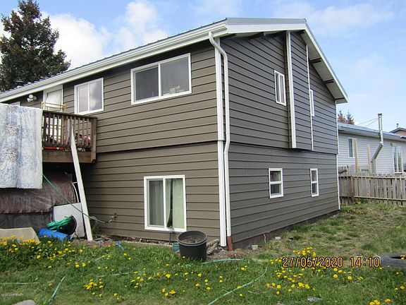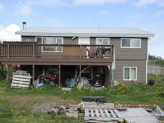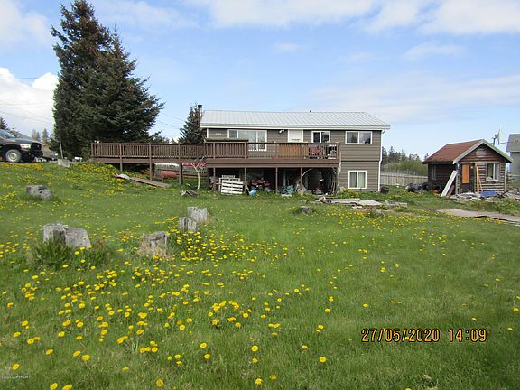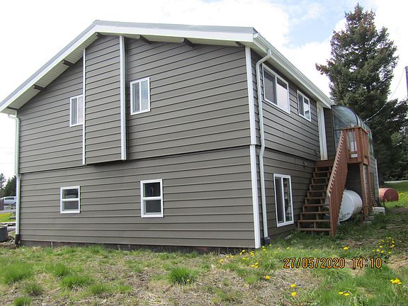 Cozy Panabode style home on raised foundation for full daylight basement access. Kitchen with extended sunporch dining area, living room with woodstove, 2 bedrooms upstairs. Downstairs has 2 bedrooms, large family room and work shop. Metal roof & vinyl siding and windows. Large grass covered lot. Same owner for 30 plus years. Needs some interior TLC