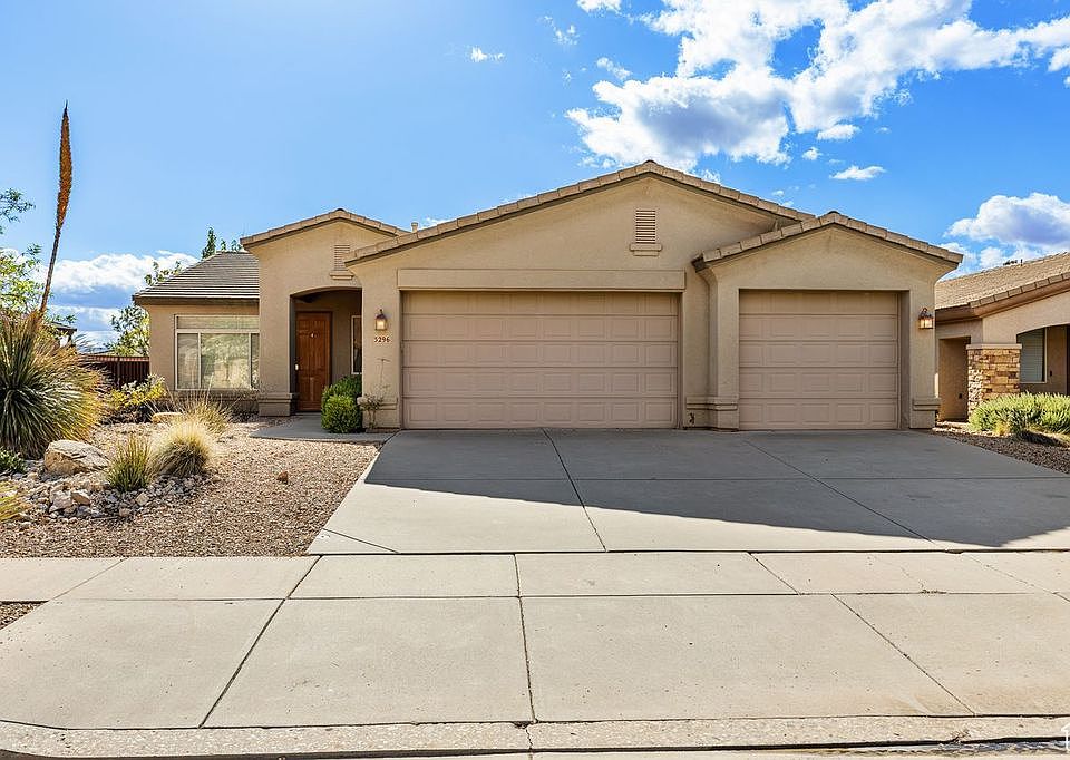 Open Floor Plan Beautiful home with great features. 4 Bedroom 2 Bath with Two-sided fireplace between living and great room, built-in bookshelves, large open kitchen/dining/great room. 8' tall doors on 3rd-car garage, extra deep on 3rd car side. Close to Freeway, Zion NP, and shopping. Clubhouse features indoor and outdoor pool, weight room, tennis and pickleball courts. Development has walking trails and playgrounds with Basketball courts. This is a great place to call home!!