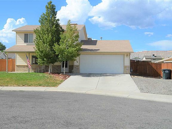 Sit on your front porch and wave at you neighbors! Nice two story home in a Cul-de-Sac, three bedrooms, 2 1/2 bathrooms, two car garage, and RV Parking. Nicely sized living room. Large kitchen with pantry, breakfast bar, and all kitchen appliances are to stay. Bright dining room that can accommodate a larger table. Family room/ game room, would also make a nice office or playroom! All three bedrooms are upstairs along with second full bathroom, linen closet, and BreezeAir cooler. Master bedroom has a full on suite bathroom and one of the bedrooms has a cozy little cut out area perfect for a desk or sitting arrangement. Backyard has an oversized patio, fenced in grass area, and plenty of RV parking in front and behind fence. Wonderful views of the Grand Mesa! Possible No Money Down, 100% Financing with qualified USDA loan!!! Call for an appointment!