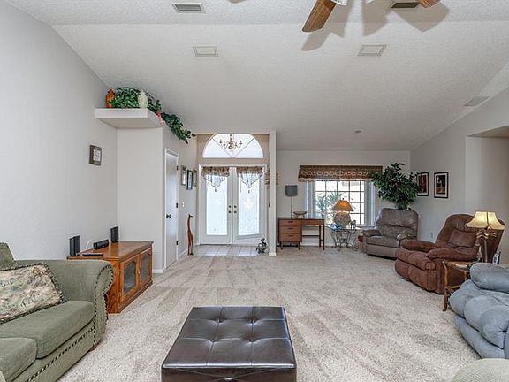 Large 2 bedroom Pool home with almost 1600 living sqft, situated on a 1/3 of an acre corner lot. Spacious Great Room with cathedral ceiling overlooks the screen enclosed Lanai and inground pool with diamond brite finish. Fully equipped kitchen with stainless steel appliances, beautiful tile backsplash and tile flooring. Breakfast bar and separate breakfast nook that overlooks the pool area. Both bathrooms have upgraded vanities. The bedrooms are of split design providing privacy. Inside laundry is complete with sink and includes the washer and dryer. Storage shed out back. Roof 2011. A/C 2016. This one will go quick. Call today before it's gone!