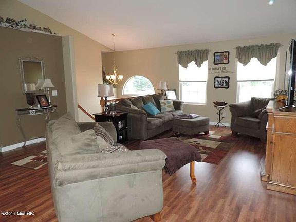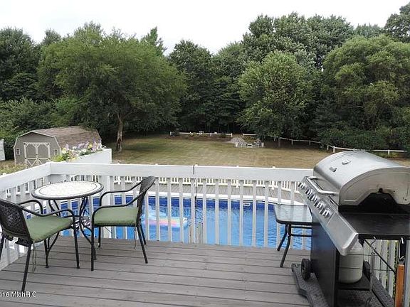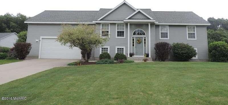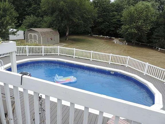 Beautiful 4 bedroom, 3 bath home in Fruitport School District. Nice open floor plan with cathedral ceilings, open kitchen/ living room area with sliders leading to the outdoor deck and kitchen island perfect for entertaining. Spacious master bedroom and bath, central air, main floor laundry and more! The finished lower level features daylight windows, awesome dry bar, large family/ re room area, 4th bedroom and bath. Outdoors you'll love the above ground pool, huge back yard and 14 x 20 storage shed. This home is a must see! Call today for your personal showing! Buyer to verify all information.