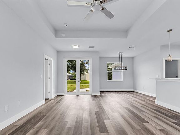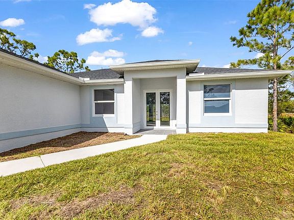 This NEW 2024 construction home has an abundance of upgrades and an open-concept layout perfect for modern living! This 3 bedroom, 2 bathroom home offers 9' ceilings, luxury vinyl plank flooring throughout, and impact-rated windows and doors. The kitchen features all-wood soft-close cabinetry, quartz countertops, and stainless-steel appliances. Quartz countertops continue throughout the home, including both bathrooms and laundry. The spacious primary suite includes dual closets, a soaking tub, walk-in shower, and dual vanities. The split floor plan ensures privacy for guests, and the interior laundry room includes a utility sink. Step outside to a large, tiled patio—ideal for entertaining or relaxing outdoors. Built with block construction, underground utilities, and smart home features including a programmable thermostat. Oversized backyard with room for a future pool or outdoor kitchen. No HOA and not in a flood zone. Centrally located near shopping, schools, and more. Move-in ready!