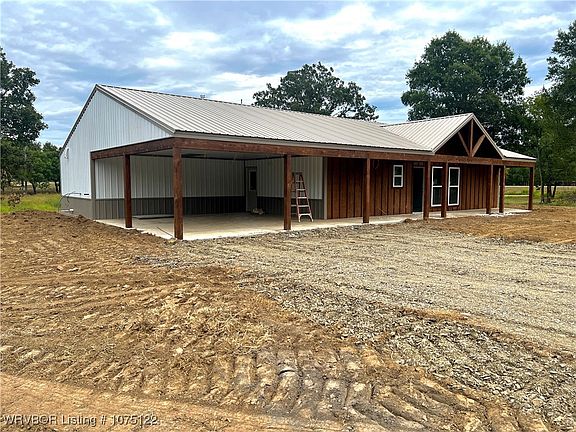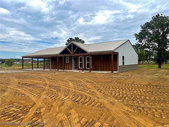 Welcome to this beautiful new construction barndominium home located in Howe, OK. With 3 bedrooms, two bathrooms, sitting on a spacious 3 lots, this property offers a perfect blend of modern comfort and natural beauty. The kitchen, dining, living area boasts vaulted ceilings making family gatherings comfortable and pleasing. The kitchen has a farmhouse sink, & granite countertops. The custom cabinets and walk-in pantry provide the space you need for all of your cooking supplies. The window over the farmhouse sink views the front yard area. The split floor plan has the additional 2 bedrooms along with the bathroom. The primary bedroom is a true sanctuary, complete with a walk-in closet and a luxurious ensuite bathroom. The ensuite features modern fixtures, a walk-in shower, and dual vanities, providing a spa-like experience all while being connected to the laundry room for convenience. With the 3 spacious lots, this home provides ample outdoor space for various activities and enjoys the beauty of its hilltop location. Whether it's hosting gatherings, gardening, or simply enjoying nature, the yard offers endless possibilities. Conveniently located 15 minutes from Wister Lake. The Ouachita National are nearby for hunting, hiking, fishing & four-wheeling. The larger city of Fort Smith, AR is located 30 minutes away. This property is the ideal place to create lasting memories and enjoy a relaxed, comfortable lifestyle.