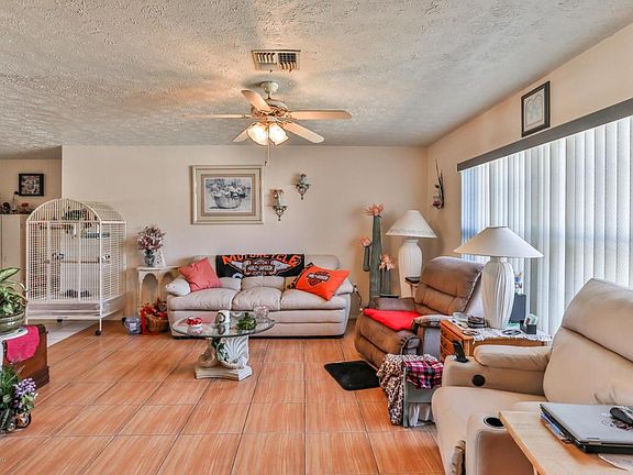 This lovely home features just under 1500 living sqft with 3 bedrooms and 2 full bathrooms. The open floor plan consists of a living room when you enter, a dining area off the kitchen and a family room beyond that. Nice layout, adjustable options. If a full dining area is not needed then the space can be used as a family room with an eating area off the kitchen instead. Ceramic tile throughout most of the home with carpeting in the bedrooms. Large patio with vinyl windows. New A/C in 2015 and New Roof in 2011. Call today to make this house your home.