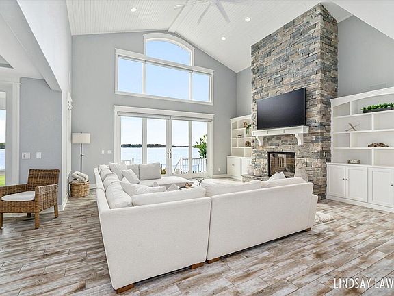 outdoor fireplace and a screened-in covered porch? ideal for unwinding while taking in breathtaking sunsets over the water. The stunning landscape and amazing curb appeal complete the picture of this peaceful and stylish waterfront retreat. Whether you're hosting weekend getaways or looking for year-round lakefront living, this enchanting property delivers the ultimate in comfort, style, and location for you to enjoy throughout every season as your personal oasis.