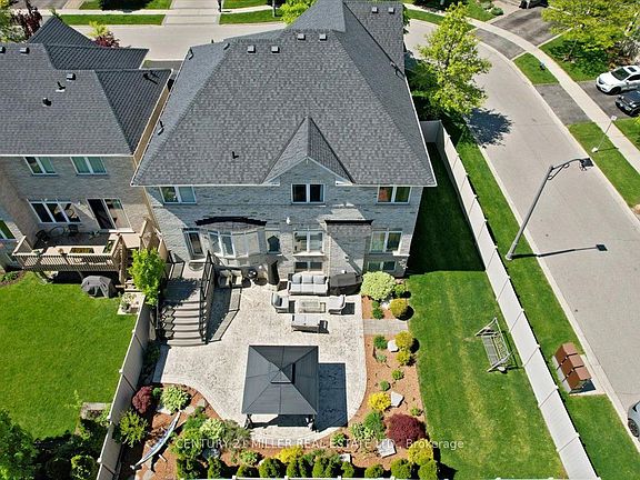 Step into luxury with this beautifully renovated McCorquodale model, located on a quiet street in Oakville's prestigious Bronte Creek community renowned for its forestlands, scenic trails, and tranquil ravines. Set on a meticulously landscaped lot, the home features a custom concrete driveway and walkway, manicured gardens, and a private backyard oasis complete with a composite deck, tinted glass railings, stone patio, and hardtop gazebo. Exterior upgrades include a new front door, updated garage doors with openers, and built-in security cameras. Inside, the fully updated open-concept layout showcases elegant Italian porcelain tile, MDF paneling, pot lights, and stylish fixtures throughout. The formal dining room offers coffered ceilings and a mirrored accent wall, while the living and family rooms are enhanced with wainscoting and a striking marble fireplace feature. The chef-inspired kitchen boasts stainless steel built-in appliances (oven, microwave, cooktop, dishwasher), quartz countertops and backsplash, a large island with breakfast bar, and direct access to the backyard through a garden door.Main floor highlights also include a home office, laundry room with custom cabinetry and garage access, and a modern powder room. Upstairs offers 4 spacious bedrooms & 3 bathrooms. The primary suite impresses with a walk-in closet and spa-like ensuite with double sinks, glass-enclosed shower, and soaker tub. Two bedrooms share a semi-ensuite 4-piece bath, while the remaining bedroom is served by another 4-piece bath. A bonus second-floor office adds functional flexibility.The finished basement extends the living space with a sleek kitchenette with quartz waterfall island, a cozy family room with quartz feature wall and fireplace, gym with hydro spa, fifth bedroom, and a 3-piece bath with rainfall shower and chromotherapy wall. Extras include a 6-camera HD security system, EV charger (2025), and roof (2018). Close to top-rated schools, trails, parks, transit, and highways.