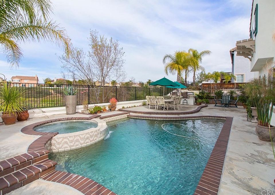 Remarkable Redhawk home in gated Fairways overlooking the 6th green. Hurry, this one will go fast. It's absolutely turnkey with attention to detail very apparent. A low maintenance backyard showcases beautiful custom concrete design around a lovely salt cell pool/spa with water feature! Tropical & low maintenance plants, built-in Bull BBQ with gas line to house and breathtaking views including a hot air balloon extravaganza every weekend to enjoy! Excellent curb appeal welcomes you into a covered circular front door entry. Step inside and admire a formal living and dining room. Crown molding throughout! A downstairs office plus full bath makes the layout highly desirable. An exceptional kitchen offers granite counters, island with storage, built-in desk, stainless steel appliances & tile flooring. Enjoy relaxing in the family room off the kitchen with custom built-in media unit, ceiling fan, fireplace, recessed lighting + surround sound. As you enter the master suite you will immediately admire the views! Other features include dual sinks, separate tub/shower, ceiling fan, and incredible walk-in closet with custom built-ins! Secondary bedrooms have mirrored closet doors and neutral carpet/paint. Upstairs laundry, 3-car garage & top rated schools! Must see!