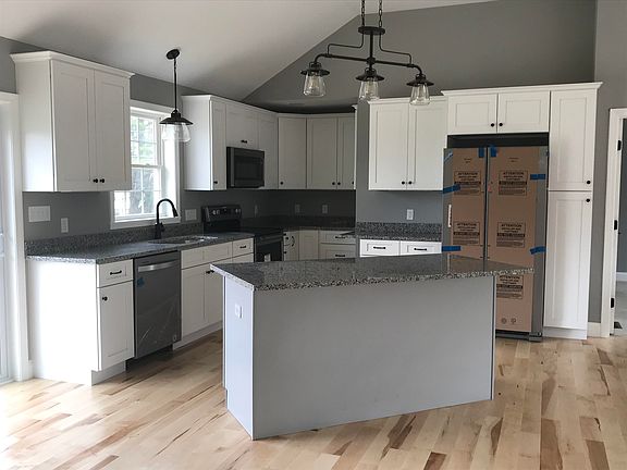 Gorgeous new home now under construction with a completion date around April 30th. Quality construction and filled with high end finish and features! Solid maple floors throughout the main area, tile flooring in the baths. Kitchen will have white shaker cabinets with undermount lighting, center island breakfast bar & granite counters. Main area (kitchen/dining and living room) is open with vaulted ceilings and tons of natural light! Sliding glass door off the back to a large deck that overlooks woods. Master bedroom w/private bath and walk-in closet. Laundry hookups are on the main level. Finished area in the lower level is perfect for an office or flex space. Efficient FHA/propane furnace and heat pump hot water tank. Central Air is included! 2 car garage under with a full walkout door. Terrific location with privacy yet convenient to area amenities. Some photos are of similar homes, taxes are tbd.