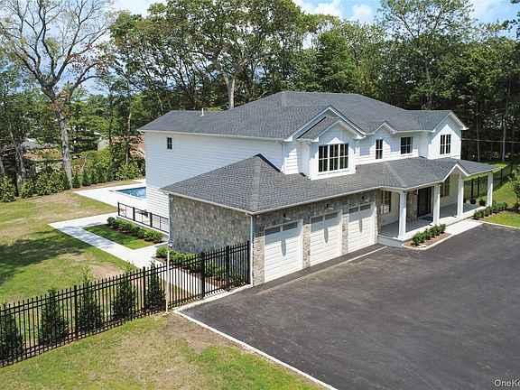 Private & Serene in a Country Setting with Big Sky Views in the Heart of North Syosset! Stunning Masterpiece of Modern Luxury Living by Prominent North Shore Builder! Beautiful Hampton Style Center Hall Colonial in a lush tree lined neighborhood. You are greeted with a formal 2 story entry that showcases elegance and sophistication on one acre of tranquil property. A custom stone & shake exterior showcases the eye-catching curb appeal of this residence. Abundant natural light, high ceilings, custom moldings & beautiful oversized wide-plank White Oak flooring set the stage for this amazing home. This special floor plan highlights architectural excellence with the finest attention to detail. The banquet sized Chef’s Eat-in Kitchen has top-of-the-line Deluxe Appliances & a walk in pantry. The Great Room features a Modern linear gas fireplace with floating built-ins. All Designer Bathrooms, Exquisite primary bedroom with ultra-luxury spa bath and his & her furniture quality walk-in closets plus 4 Additional En-suite Bedrooms, all of which feature walk-in closets and one of which is conveniently located on the first floor. A large mudroom with side door entry is located behind the 3 car garage & a grand 10-foot high basement is partially finished and offers a wealth of potential for personal customization. This show stopping property has been designed with an infinity terrace & hi-end pool with spa, sun deck & automatic retractable cover. This home blends exceptional craftsmanship with thoughtful design, making it a premier choice for those seeking luxury, amenities & convenience. Located In the Renowned Award-Winning Syosset School District. This Unique Residence Is Near Golf & Country Clubs, Fine Dining, Shopping & Transportation. (some images virtually rendered)