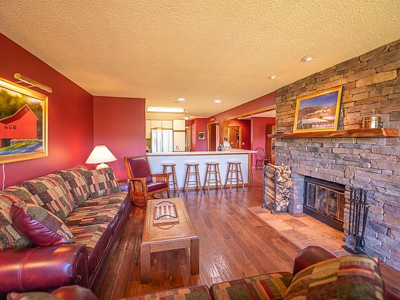 Located directly across from the main entrance to the Mount Snow ski resort, this lovely updated Timber Creek townhome offers all the benefits of a home away from home with almost none of the upkeep. Enjoy spectacular direct views of the ski trails, fireworks displays, groomers, sunsets, and torchlight parade out the windows of your own unit, with direct shuttle service from your front door to the base area, and convenient amenities including an on site management company, exterior maintenance, snow removal, landscaping, and more. Inside you are treated to a renovated open concept living space, a large open kitchen with updated appliances and large breakfast bar, a wood burning fireplace with stone hearth in the spacious living area with new picture windows, dining room which opens to the oversized deck to entertain while enjoying the view, large main floor guest bedroom and full bath, rustic mudroom entry with bench and cubbies, ski locker, and covered front porch. The bright walkout lower level has a large guest bedroom, a second full guest bath, a large family room with ample space for hangout area and tv as well as sleeping, hot tub, sauna, laundry room, owners closet, mostly new windows, and updated flooring throughout for true turn key enjoyment. This is complemented by the Sugar House amenities center including indoor pool, hot tub, gym, racquetball and basketball courts, locker rooms, tennis courts, and cross country ski trail system and warming house.