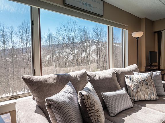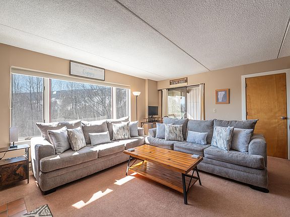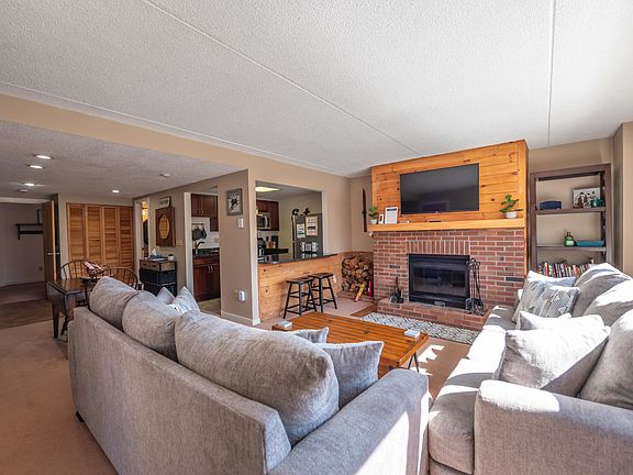 Stunning views and access to Mount Snow! This meticulously maintained Snowtree condo is located at the base of the Mount Snow ski resort and looks directly out at the slopes of the mountain, so that you can check the conditions from your window in the morning, and watch the fireworks from your living room at night. This open concept unit features tremendous natural light throughout thanks to Southern and Western exposures, a large living space with wood burning fireplace and brick hearth, kitchen with granite counters, breakfast bar, and stainless appliances, primary suite with full bath, half bath for the living space, a dining area, tiled mudroom entry, stackable laundry and large storage closet, and deck overlooking the view. The unit also offers a ski locker in the building, club house with outdoor pool and indoor hot tub, building maintenance, snow removal, shuttle to and from the base area, and more. The gorgeous views can be enjoyed year round and the condo convenience affords plenty of downtime, not upkeep.