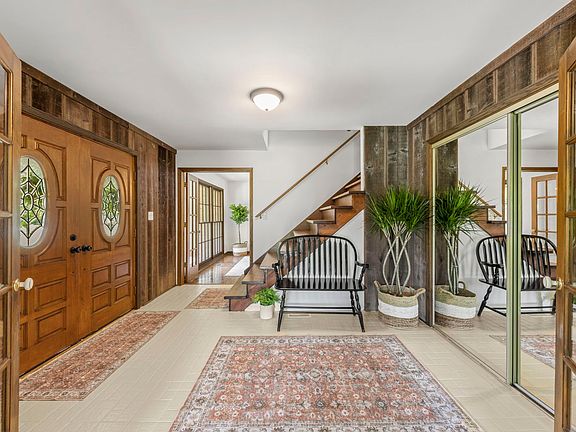 Welcome to 32W265 Pratt Road in Historic Wayne! This two story traditional brick home is located in a highly sought after neighborhood, known for its scenic landscapes and equestrian trails. Nestled up to the Forest Preserve on quiet dead-end street, this Home offers a perfect blend of tranquility & convenience. The welcoming front porch beckons you to sit and relax with a warm cup of coffee, while gazing at wildlife or the stars at night. Upon entering the residence, you are greeted with a grand foyer, featuring a massive closet, with abundant space for all your entryway or mudroom needs. To the right is a large Family Room, which has a harmonious blend of rustic charm & modern elegance. Floor to ceiling windows flood the space with natural light, highlighting the expansive views of the surrounding landscape. A large brick fireplace stuns as the rooms focal point, inviting warmth & gatherings on chilly evenings. Vertical Barnwood walls add a touch of rural sophistication, creating a cozy yet spacious atmosphere, ideal for both relaxation & entertainment. Original wood & glass pocket doors open to a spacious and inviting kitchen, with ample seating at the counter, ideal for casual meals and socializing. Adjacent to the breakfast bar is a cozy eat-in area, providing a charming spot for casual meals. Beautiful light colored quartz countertops (2024) & subway tile backsplash (2024) help offer both elegance and durability. The Kitchen also contains an island, which is key for extra storage, as well as a practical workspace for meal preparation and serving. Whether cooking for a crowd or simply enjoying a quiet moment, this kitchen offers both functionality & style, making it the heart of the Home. A sliding door seamlessly connects the kitchen to a large deck, creating an indoor outdoor flow. Imagine enjoying evening meals on the large, expansive deck, complete with a private, screened in Gazebo, as well as tons of greenspace, which includes different varieties of fruit trees. Inside, the separate private Dining Room has Parquet Wood flooring throughout, which enhances the rooms warmth & character, creating a welcoming atmosphere for gatherings and special occasions. The second floor has four large bedrooms, each featuring tall ceilings, fresh neutral paint (2024), new carpeting (2024) and large closets, with generous space for all storage needs. The primary suite has a private bathroom with double sinks & a large stand up shower. The spacious hall bathroom has two separate sinks and a shower/tub combination. Discover the potential of the unfinished basement, with 1200 extra square feet, a blank canvas with a myriad of possibilities to transform it into a dream space. Enjoy the charm of Wayne, with its tree lined streets, walking trails and close knit community atmosphere, while still being within an easy reach of nearby amenities, Post Office & Schools. Roof (2014) Furnace/AC (2015) Quartz Countertops (2024) Fresh interior Paint through out(2024) New carpet (2024) Welcome Home!