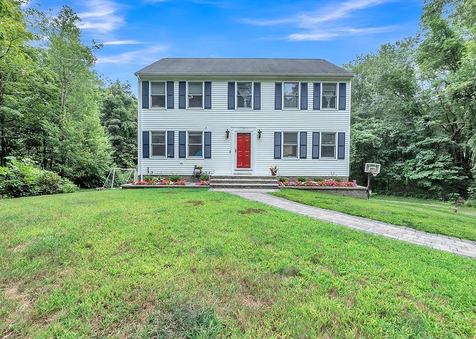 Young colonial privately nestled at the end of a long driveway, offering the ultimate seclusion. This well-maintained home features a spacious kitchen with quartz countertops and stainless steal appliances, updated bathrooms, and fresh paint throughout. The finished basement with garage access provides extra living space for entertainment or work-from-home needs. Step outside to a deck overlooking a beautiful yard complete with a swimming pool and hot tub, perfect for relaxing or hosting gatherings. A storage shed adds convenience for seasonal items and tools. This home blends comfort, style, and privacy—perfect for a family seeking both space and tranquility.
