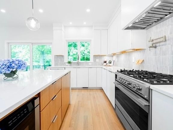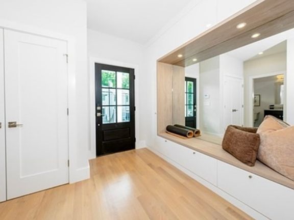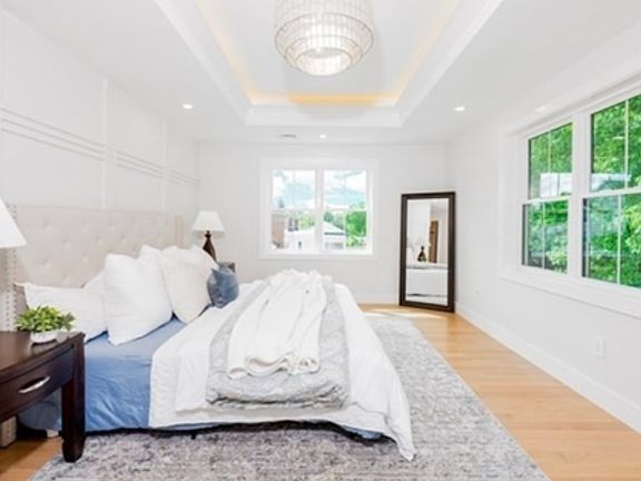 Designed with luxury in mind, and curated by an interior designer, the home features high-end finishes, white oak hardwoods, and a chef's kitchen with quartz counters, paneled appliances, and gas cooking a feature now unavailable to new builds in Newton. The open main floor offers flexible open plan living with French doors to an office or retreat. Upstairs are two bedrooms, a full bath, and a primary suite with tray ceilings, ensuite bath, and custom closet. The upper level features a fourth bedroom or family room, full bath, and balcony. The lower level offers a wet bar, mudroom, and a garage pre-wired for EV charging.. Step outside to enjoy a fenced yard, perfect for a touch of outdoor tranquility while remaining within close reach of shops, restaurants, and easy access to Route 9.