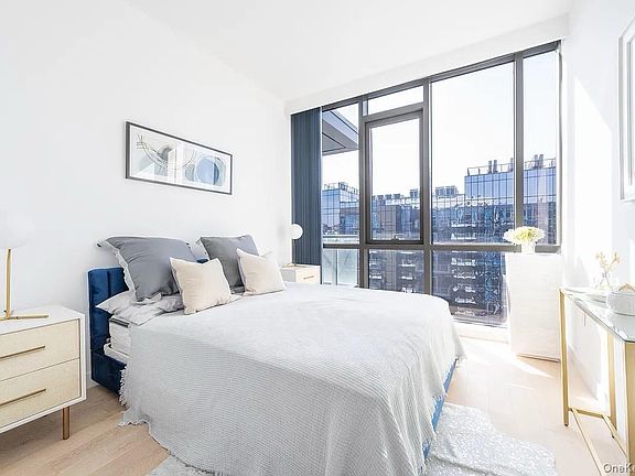 Unit 9K at The Farrington is a meticulously designed 2-bedroom, 2-bathroom residence, offering 863 square feet of interior space and 90 square feet of private outdoor living. This home exemplifies modern luxury, seamlessly blending comfort, style, and functionality. The open-concept living and dining area serves as the heart of the home, featuring floor-to-ceiling windows that bathe the space in natural light while providing access to a spacious balcony, perfect for relaxation or entertaining. The modern kitchen is designed for culinary excellence, featuring premium Italian cabinetry, Calacatta Quartz countertops, and high-end Bosch appliances. The primary suite is a luxurious escape, boasting a spacious walk-in closet and a beautifully appointed ensuite bathroom with Calacatta matte porcelain tiles, custom walnut wood veneer vanities, and radiant heated floors, creating a spa-like ambiance. The second bedroom, featuring a generous closet, is perfect for guests or a home office setup. Residents of The Farrington enjoys an exclusive selection of amenities, including: indoor swimming pool, fitness center, rooftop terrace with BBQ area, creation room, bike storage room, parking spaces, lobby concierge service, resident lounge, professional conference room, and grand banquet halls. Strategically located in the heart of Flushing, Queens, The Farrington offers unparalleled convenience, with easy access to the 7 Train, major highways, and free shuttle bus to LaGuardia Airport. Surrounded by vibrant shopping centers, renowned dining destinations, and cultural landmarks. Welcome to The Farrington, where residence seamlessly blends urban energy with luxury living.
