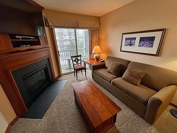 Pool views from this ski in/ski out 2 bed Allegheny Springs. Fully furnished condo that sleeps 8. Gas fireplace, A/C, high-speed wifi. Allegheny Springs has private pool and hot tub, fitness room, check-in desk. 790 sq/ft (SN)