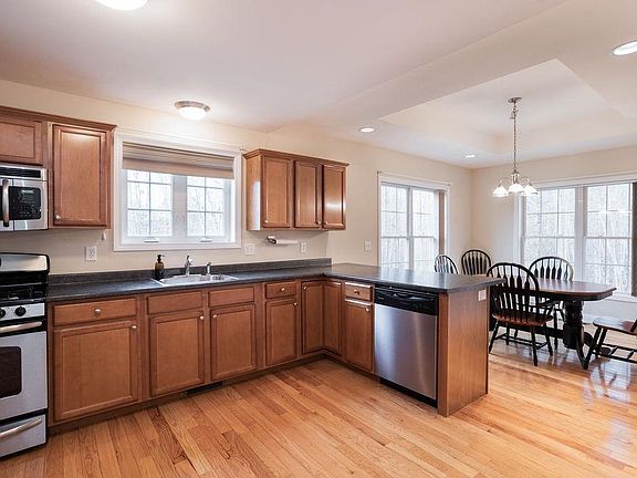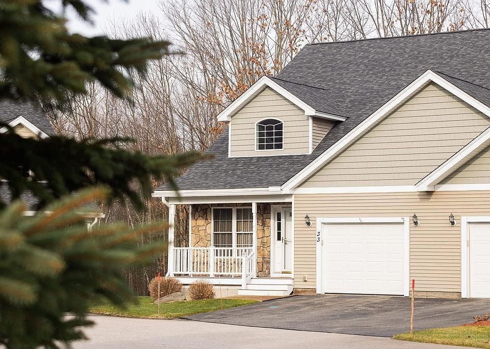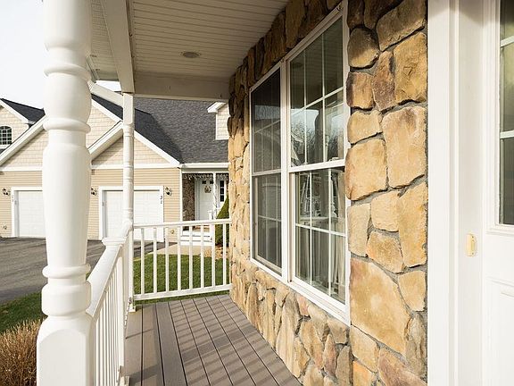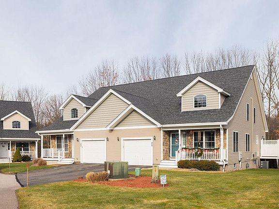 Airy & spacious modern condex in one of Litchfield's picturesque 55+ communities. Set amidst well designed landscaping and peaceful woodlands at the end of a cul-de-sac, this sunny condo offers everything modern homeowners desire, including 2 story open concept living room, cathedral ceilings with open loft, large windows, gleaming hardwood flooring, and hearth warmed living area with gas fireplace. Also boasts an open concept kitchen- dining area, w/ plenty of windows and natural light. Stylish and comfortable single floor living with first level primary bedroom and ensuite & first floor laundry. Enjoy sunny mornings overlooking the woodlands in the breakfast nook or soak up the sun and peace on the stone lined farmers porch! Escape to the serenity of your private primary bedroom suite with high windows, several closets and private bath with tiled shower. Second level living spaces find flex rooms for guests and family or a great remote office option including a sunny loft area, full bath, bedroom and dry attic/unfinished space for storage and room to expand. Enjoy year round comfort with central air conditioning, full house generator and attached garage for convenient access. Full, dry unfinished basement as well. Walk out your front door to a private community trail or meet up with friends at the clubhouse.:15 minutes to bustling Manchester or Nashua NH, and only an hour to Boston. Come take a peek at what easy, low stress living looks like in beautiful Litchfield, N.H.