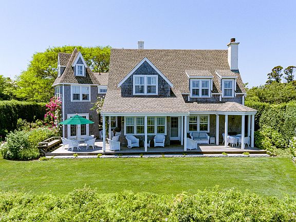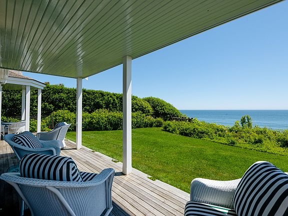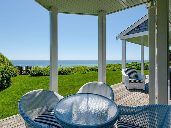 Waterfront home in Sconset offers a rare opportunity on early Baxter Road. Relax to enjoy your sweeping views of the sea with 79 steps straight to the beach via private stairs. Covered porches and vignettes throughout the house allow for a seamless transition between the indoors and out. Property includes 4 bedroom and 3.5 bath main house and adjacent studio, complete with a full bath and oversized garage. Gorgeous gardens, poignantly placed trees, and duel shelled entrances complete with this beach oasis. This location is one of a kind. Ready for immediate occupancy for the summer season. Utilize the summer to finalize plans to renovate existing kitchen and baths or re-invent the floor plan to suit your specific needs. Interior freshly painted in 2022.