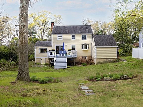 Great Opportunity!! Older Colonial in a neighborhood you may have dreamed about on a cul de sac in a great location in Wellesley with glimpses of Morse Pond. Property being offered for the 1st time in 36 yrs. by the current owners who have had many pleasant memories here. Front to back LR w/wood-burning fireplace,built-in shelves,crwn mldg. hdwd flrs. and a french door leading to an oversized deck overlooking a large bkyd. Updated kitchen with bay window, granite countertops, tile back splash. SS appliances include Bosch 5 burner gas stove, 2018 and Bosch dishwasher, 2019. DR.with built-in corner shelf,chair railing and crwn mldg. Upstairs has 3 bdrms,all with hdwd.flrs.and a nice bright tiled full bath.Updates also include roof 2006, windows 2007(except for BSMT) furnace 2019 and new garage door 2023.Walking distance to Hardy Elementary School, library, Fells Market and Pharmacy. And of course access to the pond to enjoy fishing,kayaking,swimming etc. You don't want to miss this one!